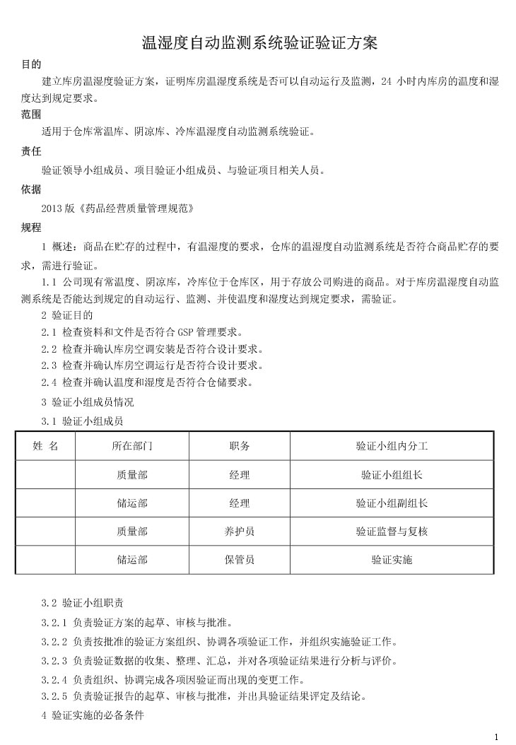 溫濕度自動監(jiān)測系統(tǒng)驗證驗證方案